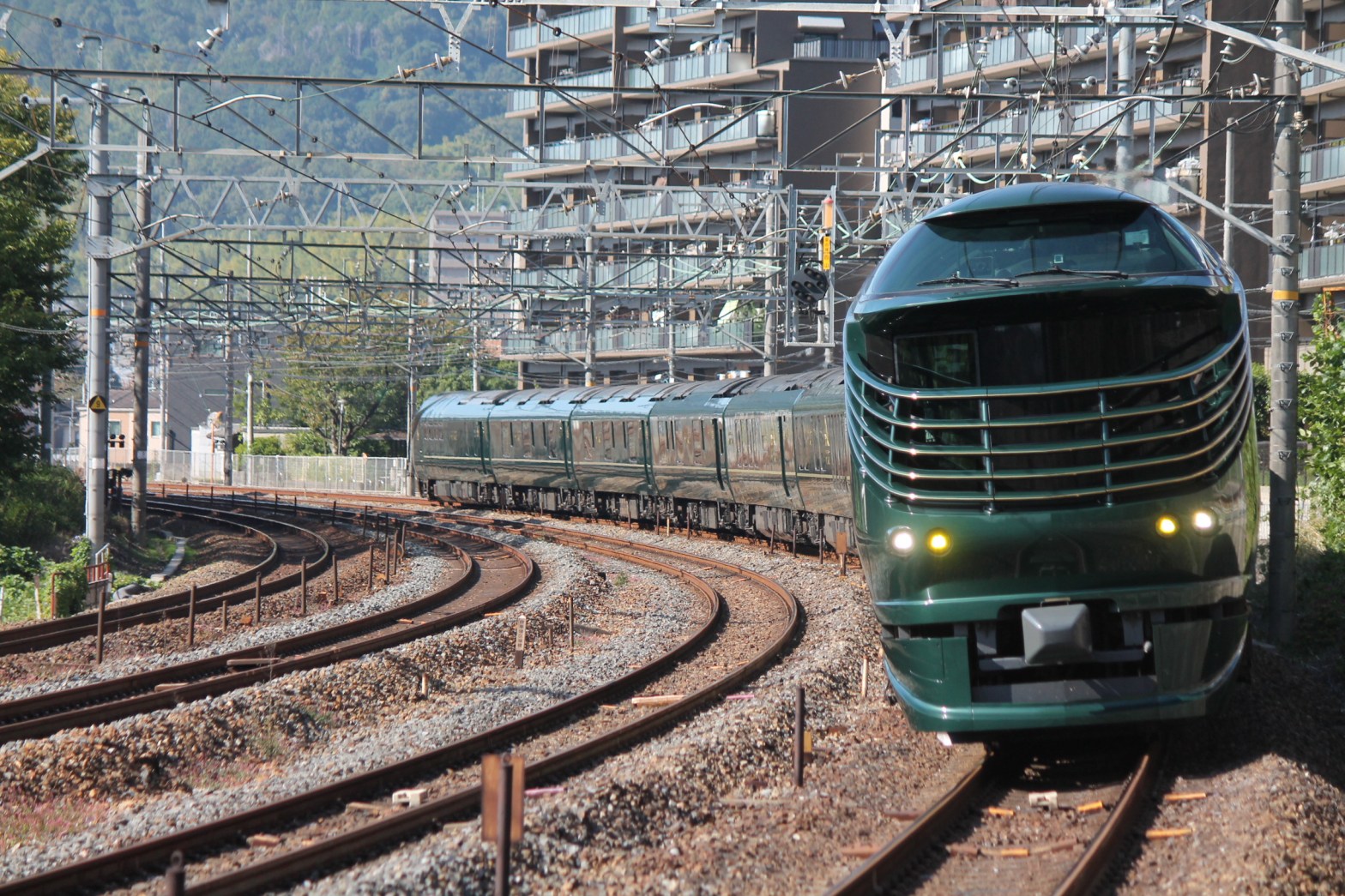 この前、ムコソに行った時向日町の踏切で瑞風を見ています。